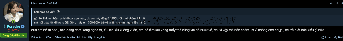 Còn tôi đi em Khả Di 2 lần thì tôi nói 2 lần, và nói "không cho quay là về dìm, em hàng chán và sợ sau cũng không tiếp nữa", thì ông bớt chém lại, nếu ông coi bài của tôi và thời gian tôi tạo nick trên đây thì đều là mới, lúc đó em ý hot sẵn rồi, thì có đéo gì mà dìm được.